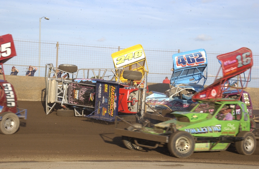 Big fields of cars huarantee none stopo action from the drop of the green until the chequered with cars often htting the fence hard and rolling over.
